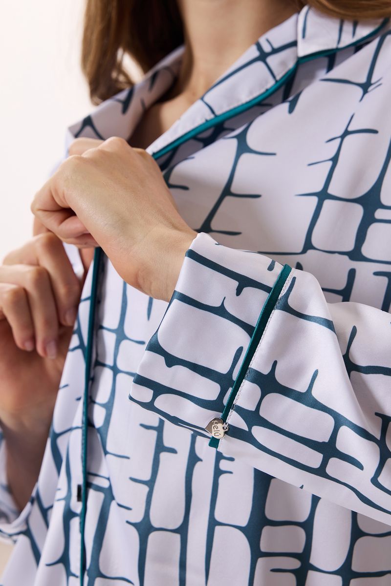 Esta camisa esta confeccionada en raso, textil que destaca por su acabado satinado, y su caída. Su diseño de corte clásico, con cuello camisero y cierre frontal de botones, se equilibra con la originalidad del estampado, creando una prenda versátil y única.