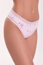 Con el calce ideal y el diseño más divertido, la Less Candy es la aliada de toda ocasión. Confeccionada en microfibra estampada con puntilla en cintura y piernas, te ofrece confort y versatilidad.