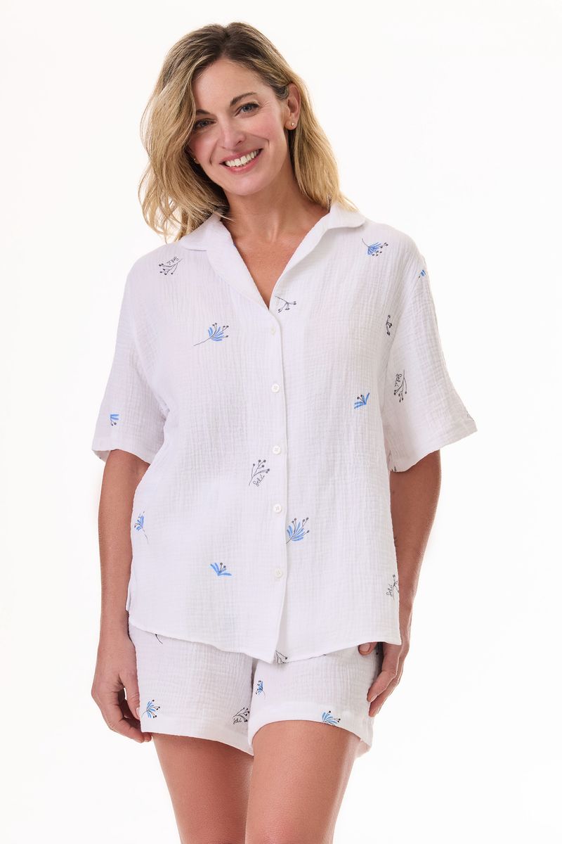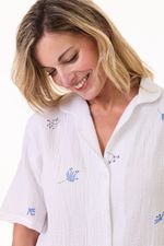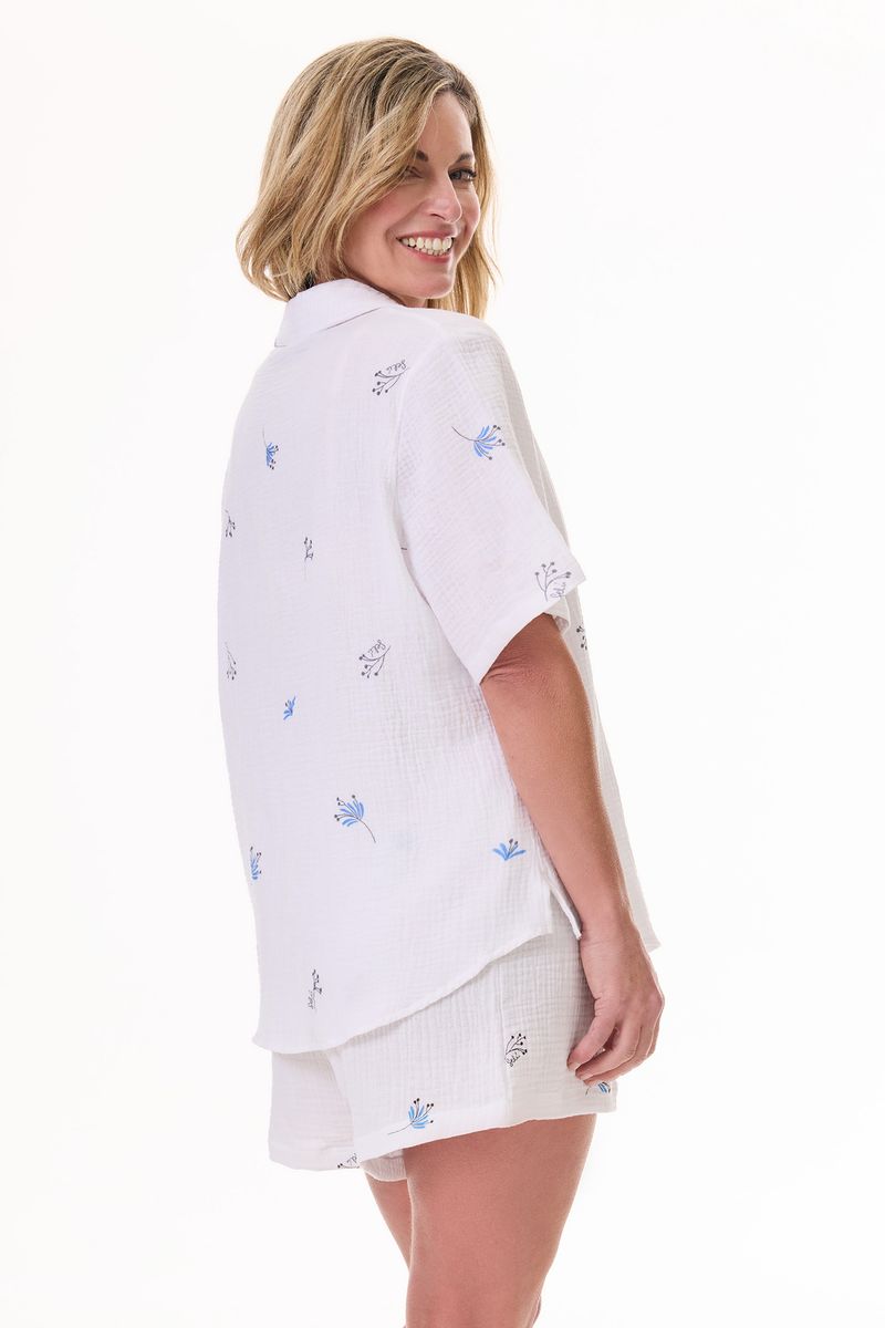 Pijama camisero confeccionado en algodón estampado, compuesto por camisa y short.