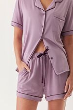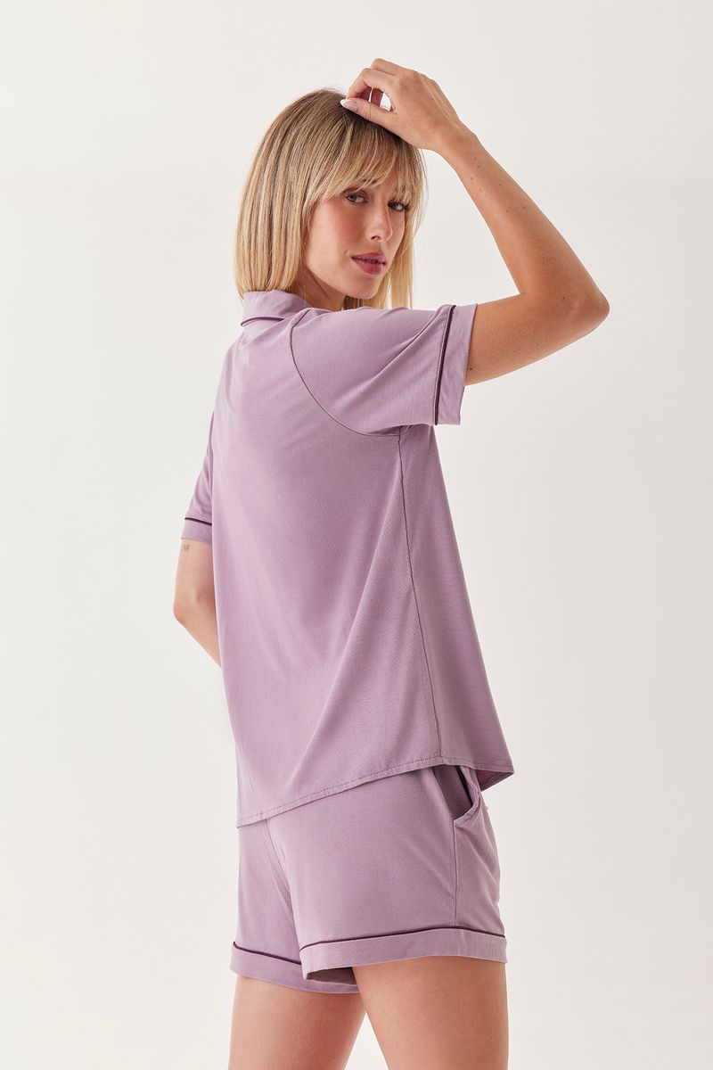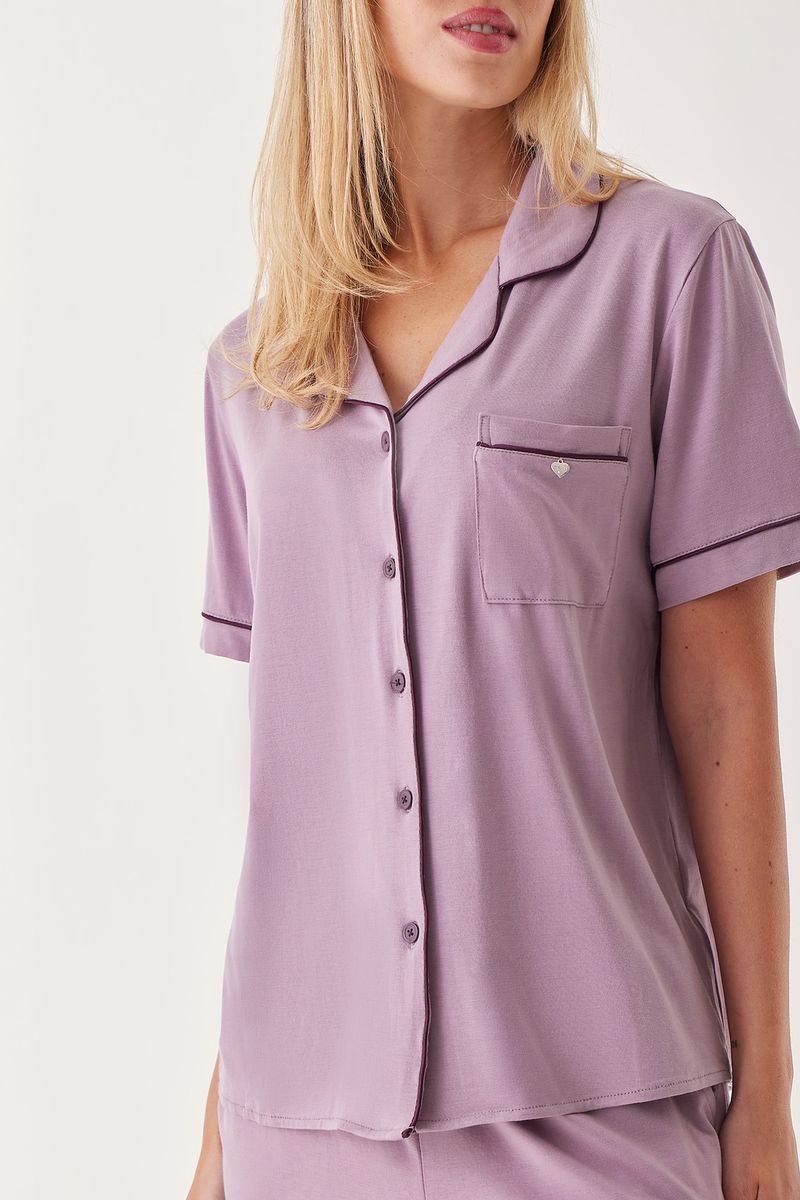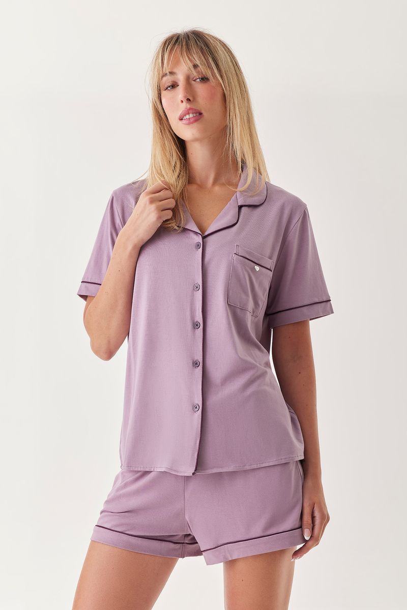 Pijama camisero confeccionado en modal compuesto por camisa manga corta y short.