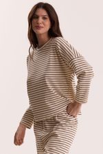Pijama confeccionado en tejido acanalado a rayas compuesto por remera y pantalón.