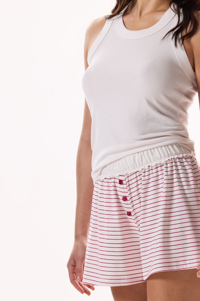 - Short rayado con cintura elastizada y botones delanteros.