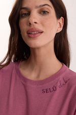 La remera se distingue por un bordado sutil en el escote que refuerza la identidad de la línea "Selú Club", junto a un calce holgado que cae con naturalidad. Por su parte, el pantalón tipo babucha suma practicidad con sus bolsillos laterales y un detalle de cartera con botones decorativos al tono que eleva el diseño.