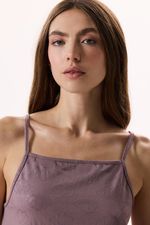- Musculosa con breteles finos regulables y detalle de abertura en espalda.