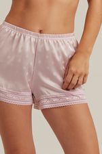 Short de raso a lunares con detalle de puntilla en botamanga.