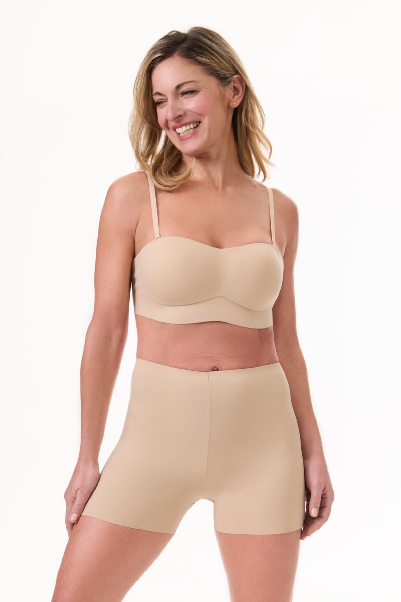 El short Vitalia confeccionado en microfibra suave, se adapta al cuerpo sin apretar ni marcar, garantizando un ajuste cómodo. Sus terminaciones en corte láser aseguran que no deje líneas visibles, mientras que su diseño de largo medio y tiro alto lo hace ideal para usar debajo de vestidos o faldas ajustadas, proporcionando una silueta suave y discreta.