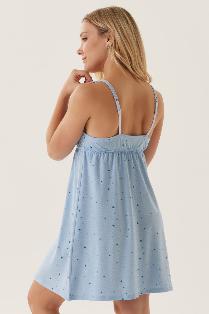 Cuenta con una taza maternal desmontable, que facilita y hace más cómodo el momento de amamantar a tu bebé. Además, tiene un delicado detalle de puntilla y breteles regulables que se ajustan a tu cuerpo, proporcionando el soporte necesario así como el ajuste por debajo del busto, que también realza tu figura de manera natural. El largo de la prenda es hasta por encima de las rodillas.