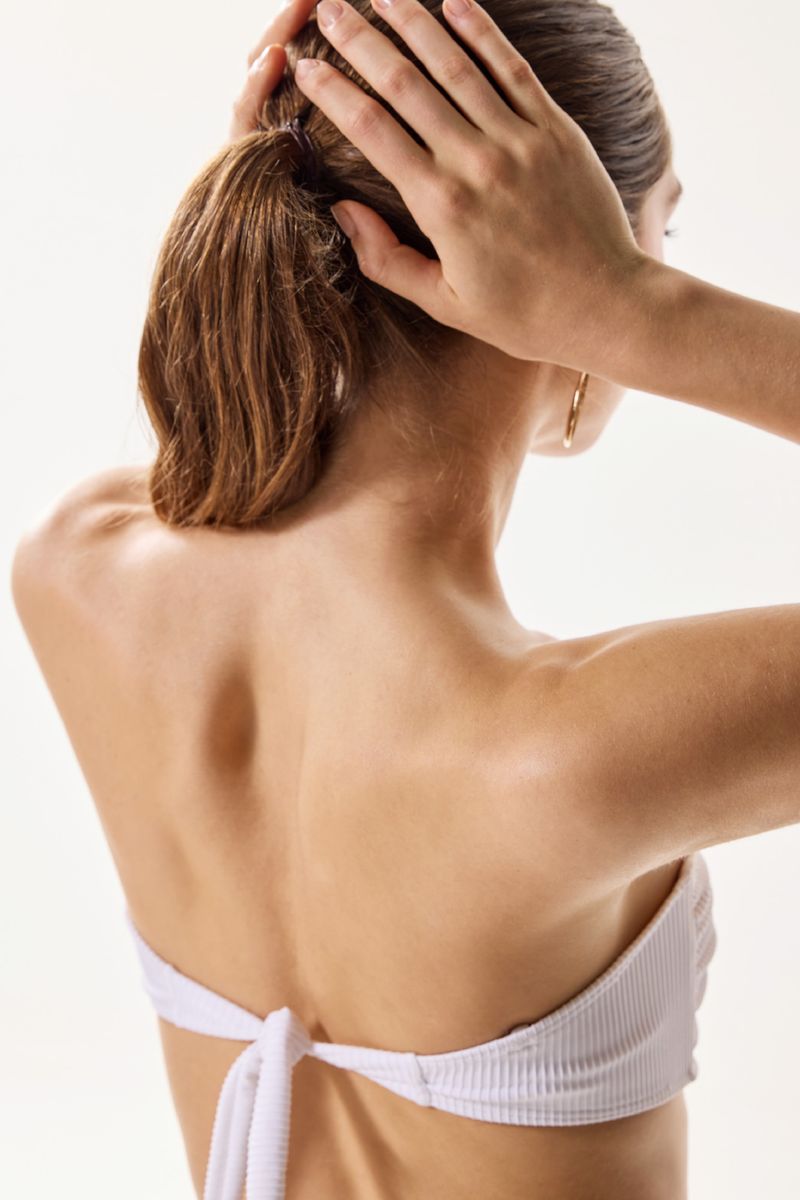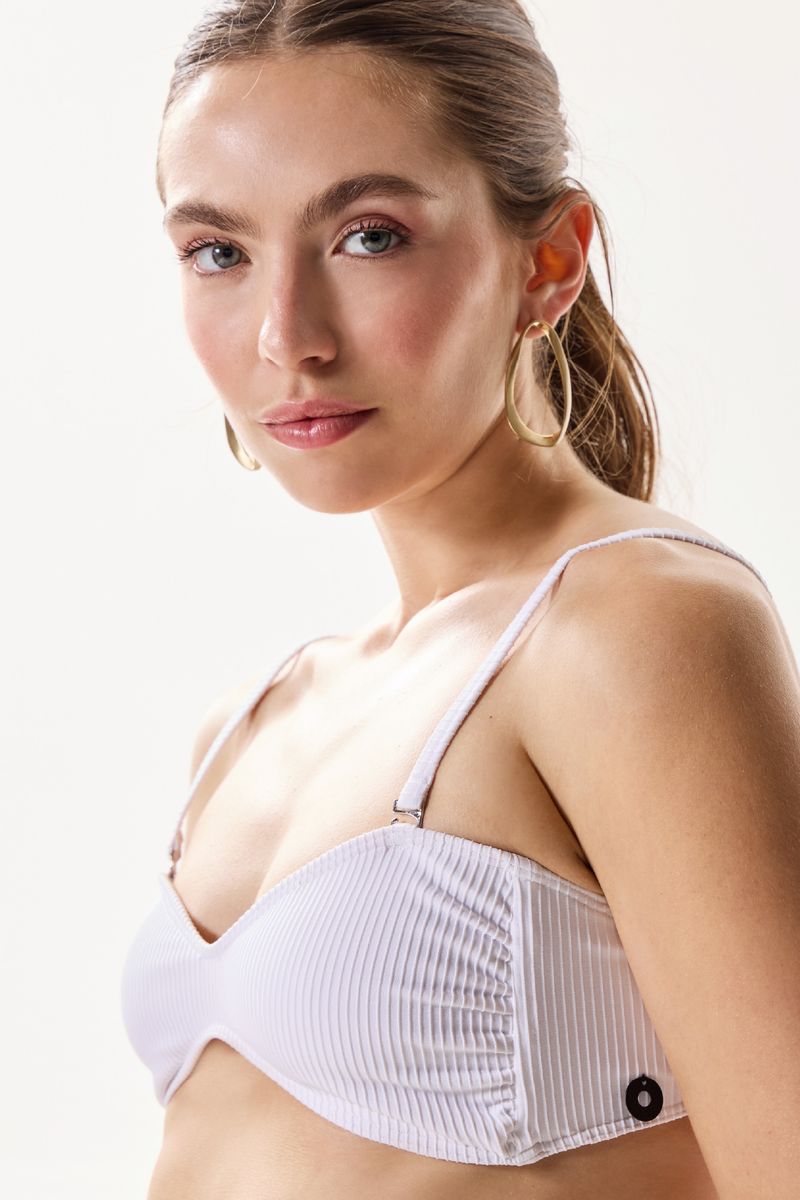 El Strapless Agave es una prenda de tendencia que realza la figura. Con un diseño de poca cobertura, ofrece un estilo moderno y audaz, ideal para lucir con confianza. Las modelos están usando talle 2.