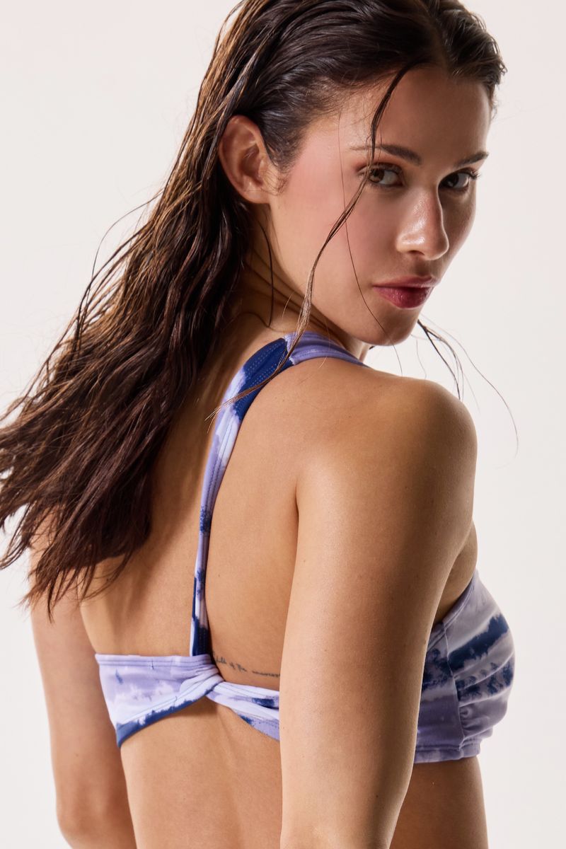 Top Azahar asimétrico confeccionado en microfibra estampada.